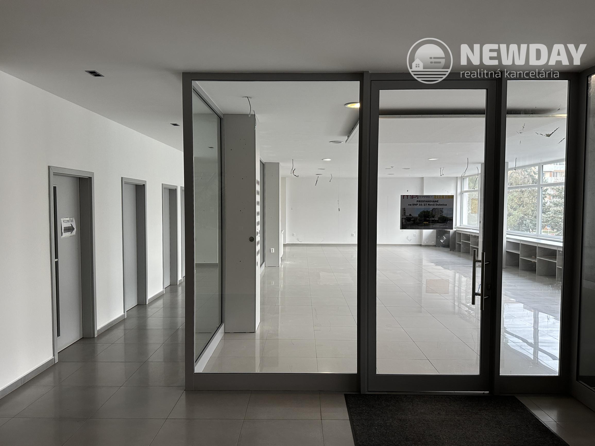 Ponúkame Vám NA PRENÁJOM presvetlený zrekonštruovaný viacúčelový kancelársky či obchodný priestor o rozlohe 150 m2, ktorý sa nachádza v Novej Dubnici na ulici SNP na 1. poschodí komerčného objektu priamo nad Tescom. Na danom poschodí sú aj ďalšie prevádzky, ktoré majú k dispozícií spoločné súkromné toalety príp. aj šatne. Priestor je vhodný na kancelárie, firemnú prevádzku či predajňu a pod.